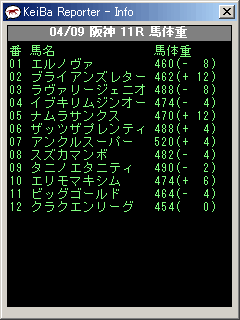 KeiBa Reporter(以下KBR)は、レースの発走時刻や馬体重、払戻金などをリアルタイムにお知らせする、競馬リアルタイム報告ソフトウェアです。