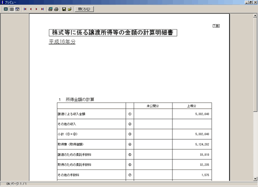 「株式等に係る譲渡所得等の金額の計算明細書(1面および2面)」、「所得税の確定申告書付表(上場株式等に係る譲渡損失の繰越用)」を印刷することができます。