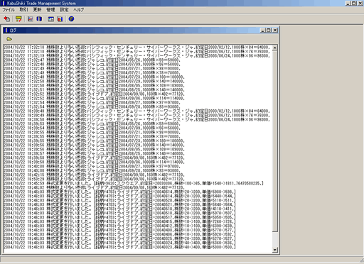 各種処理での更新結果や警告などを参照できます。ログに記録するかどうかは環境設定で変更できます。