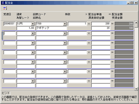 配当金を登録できます。(資産として計上するため)