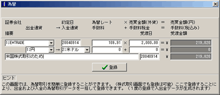 為替取引を簡単に登録できます。(円で米ドルの購入など)