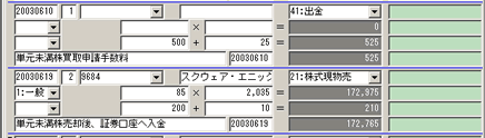 株式の売買データを登録できます。株式の売買だけでなく、入金処理なども登録できます。