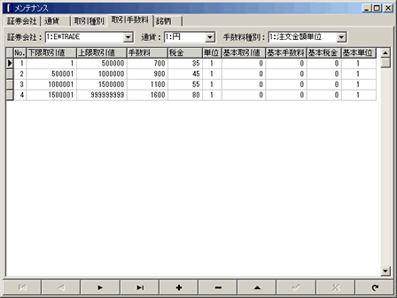 証券会社、通貨、取引種別、取引手数料、銘柄のデータを追加、修正、削除できます。