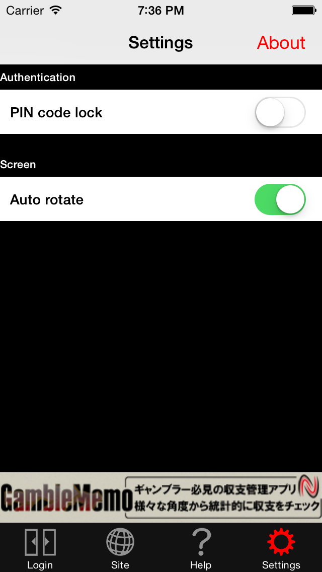 Screen images of "OneTapLogin" for iPhone/iPod touch/iPad