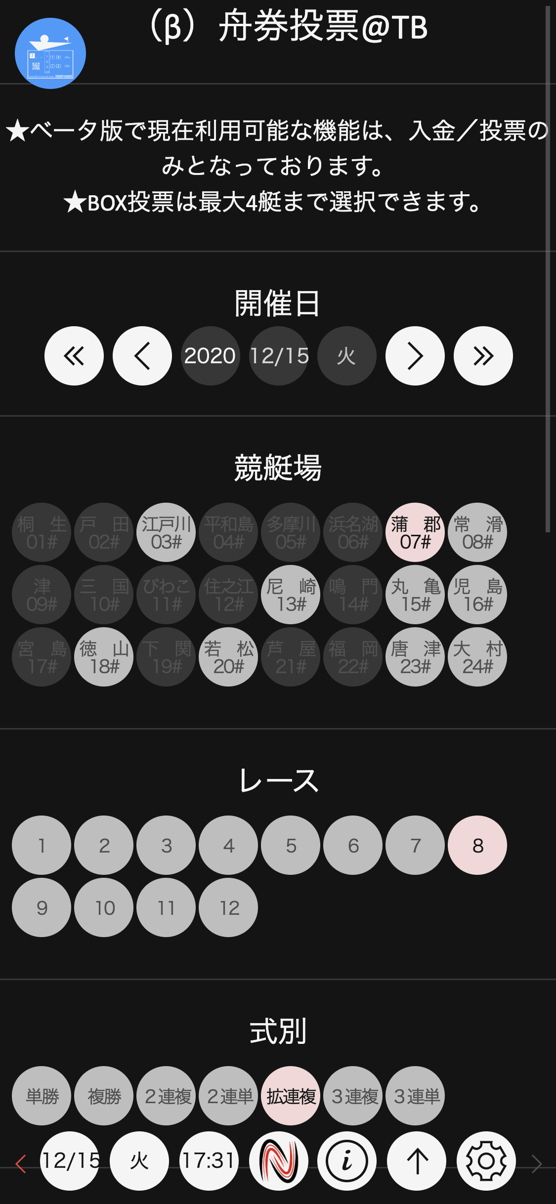 | ボートレース/競艇舟券投票アプリ「舟券投票@TB〜BoatRace/KyoTei Internet Bet System(BRIBS)」 | |